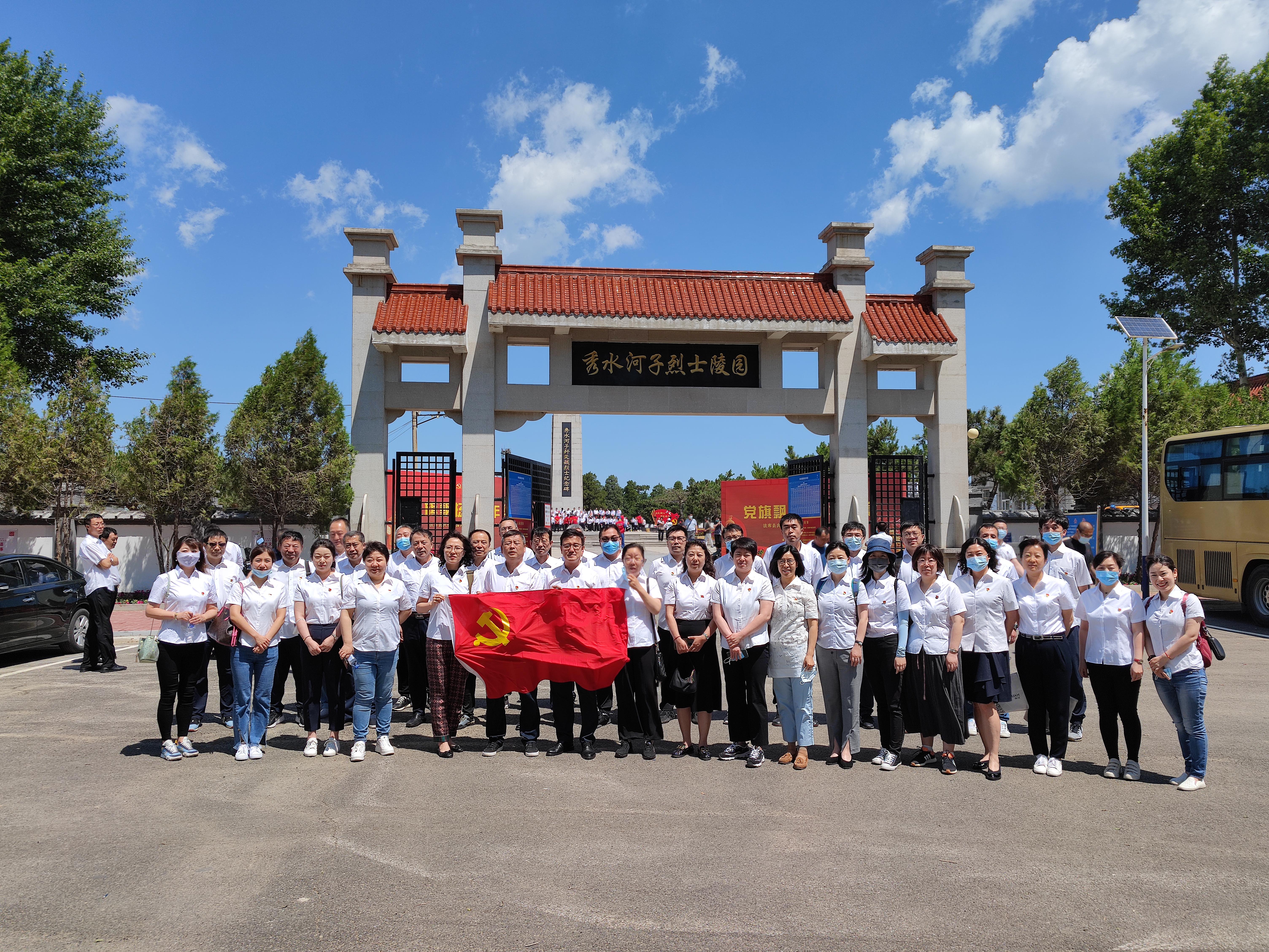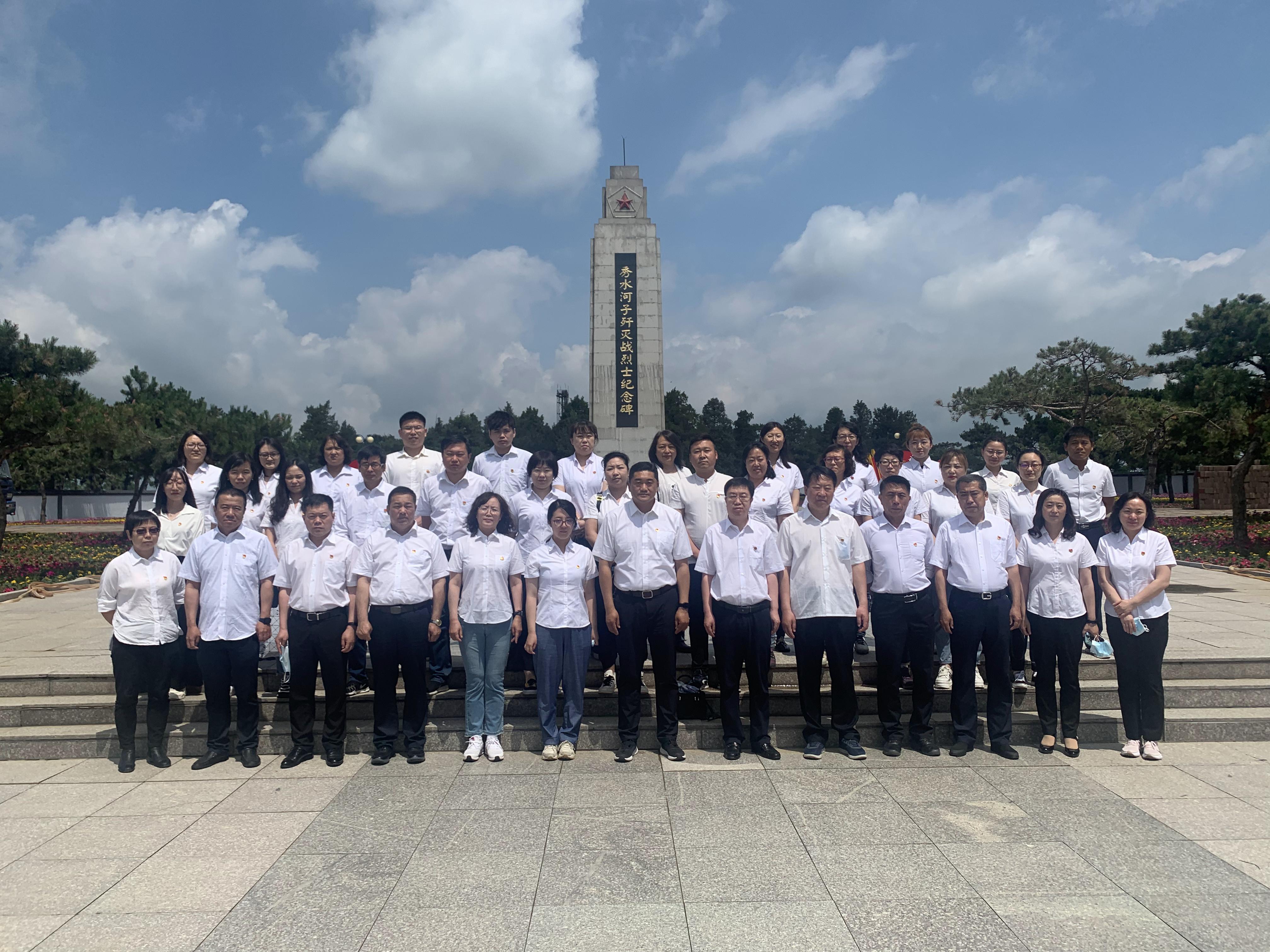在秀水河子歼灭战纪念馆,全体党员面对鲜红的党旗重温入党誓词,瞻仰艰苦斗争岁月里的历史照片和实物,聆听发生在这里的战斗事迹,体会了革命胜利的来之不易,缅怀先烈们英勇无畏、百折不挠的斗争精神。