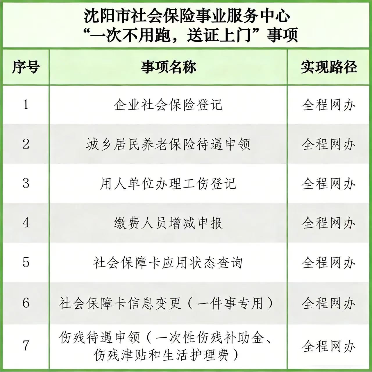 沈阳市社会保险事业服务中心“一次不用跑,送证上门”事项
